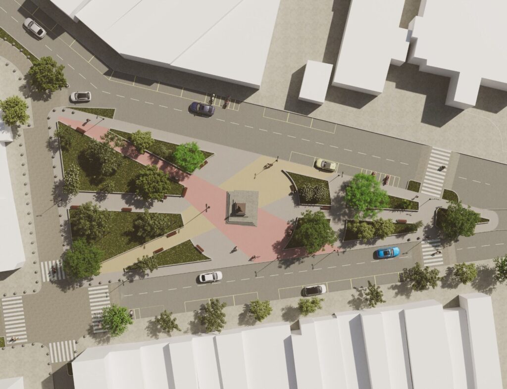 A intervenção contempla 4.250 m² de área total, com a construção de 1.800 m² de novas calçadas e vias especiais compartilhadas, que vão integrar melhor pedestres e veículos em baixa velocidade. A praça também contará com áreas verdes. Será um aumento de 128 m² de áreas verdes em relação ao atual, preservando 100% das árvores existentes e adicionando 14 novas árvores.