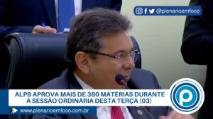 A Assembleia Legislativa da Paraíba (ALPB) aprovou, na sessão ordinária desta terça-feira (03), mais de 380 matérias,...