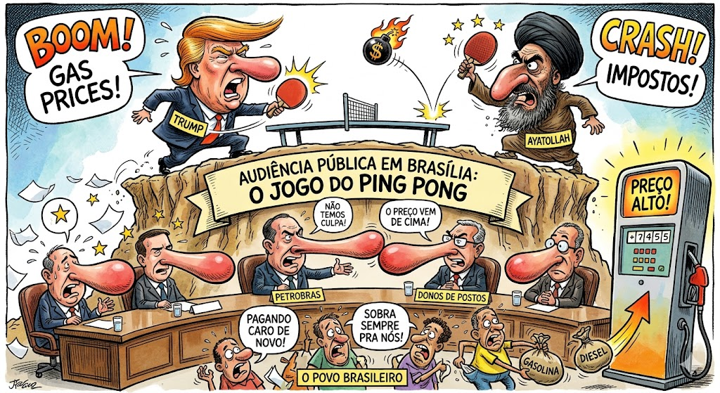 No meio desse tiroteio de justificativas, os vilões eleitos foram os de sempre: a pesada carga tributária e a instabilidade internacional — o eterno conflito entre o “eixo Trump” e o Oriente Médio do Aiatolá. Para os representantes do setor, a culpa é da guerra ou do imposto; para o governo, a solução passa por fortalecer a estatal.