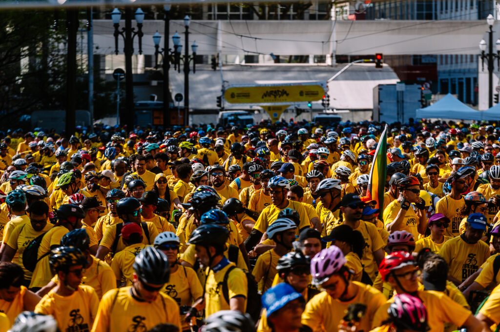 A manhã deste domingo (21) reuniu milhares de ciclistas que tomaram as ruas do Centro Histórico de São Paulo no Passeio Ciclístico da Virada, organizado pela Prefeitura. Os participantes acordaram cedo e, em clima de animação e muita interação, registraram o momento em selfies, fotos e trocaram experiências sobre suas bicicletas de diferentes estilos.